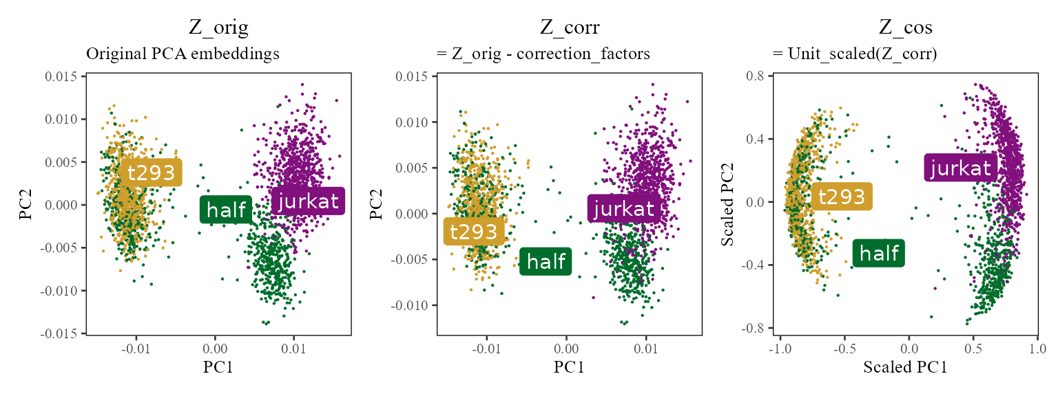 Now that we’ve modeled all these contributions to PCs, we can remove the batch specific terms from cell to get its corrected position () in :