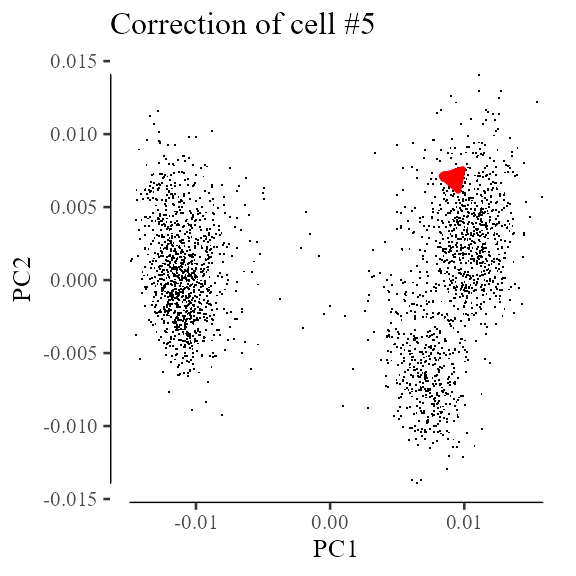 labs(x = 'PC1', y = 'PC2', title = 'Correction of cell #5')